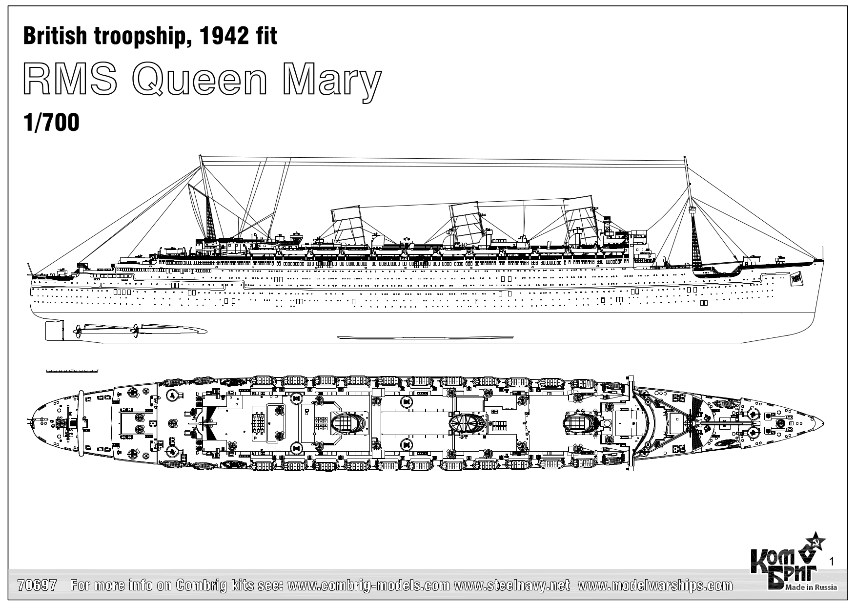 70697HF/WL British Troopship RMS Queen Mary, 1942 fit, 1/700
