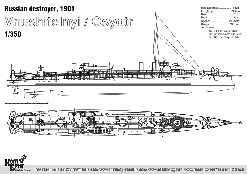 35144 WL/FH - Russian Destroyer Vnushitelny/Osyotr, 1900, 1/350