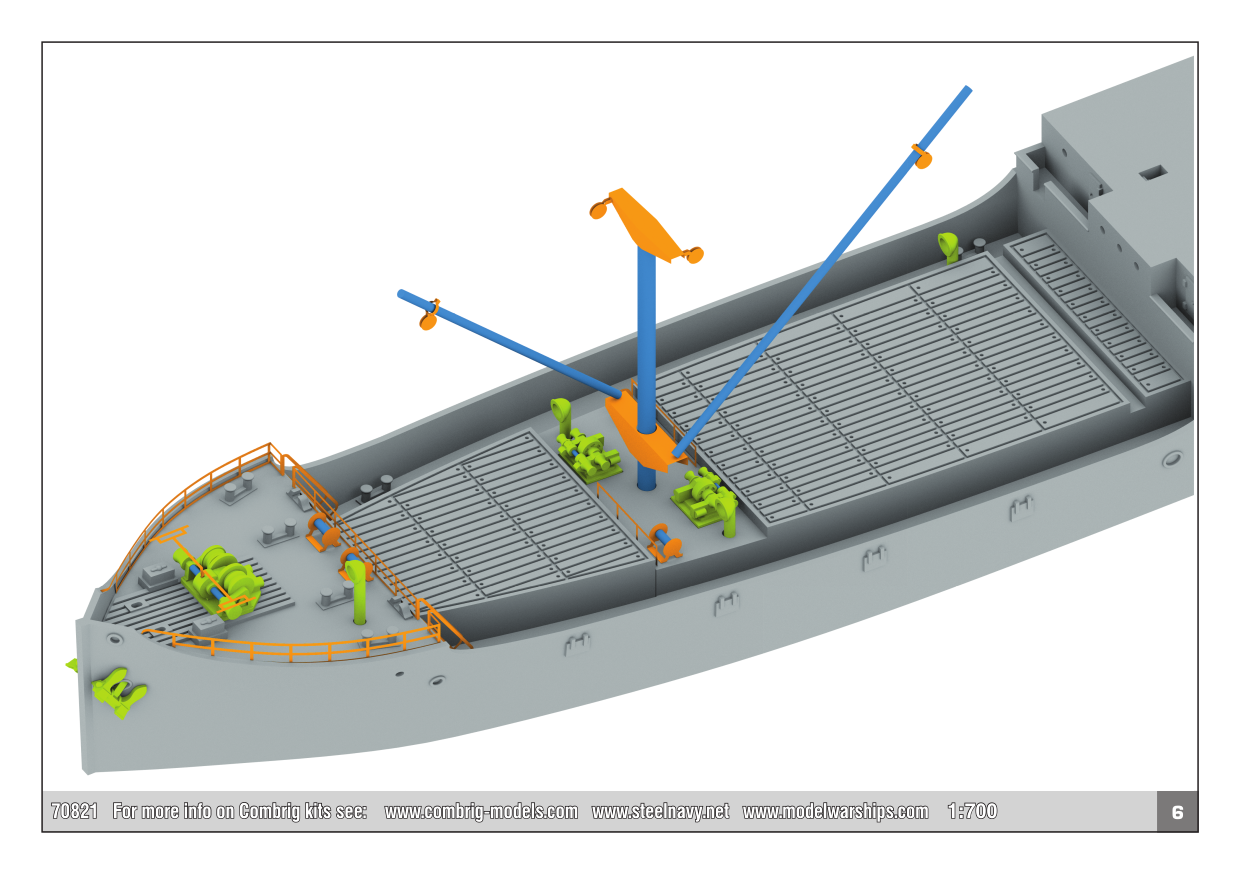 To ensure rapid replacement of the losses caused by German submarines in the First World War, a large number of merchantmen were built on a few standard designs. These workhorses of the world’s oceans were given names ranging from ‘War Acacia’ to ‘War Zinnia’ (all active 1917). The model represents the ‘D’-type designed by S. P. Austin & Sons of Sunderland. It shows the defensive armament of a single 4.7 inch gun and the paravanes for protection against mines. It is of exceptional quality; the fittings, in particular, have been beautifully made. it was decommissioned. 3200 t; 89.6 x 12.83 x 5.78 m; 1400 hp; 9.3 knots.